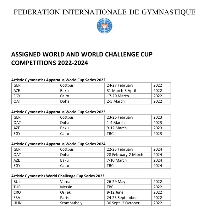 Lsovago On Twitter Fig World And World Challenge Cup Competitions 2022 2024 Gymnastics